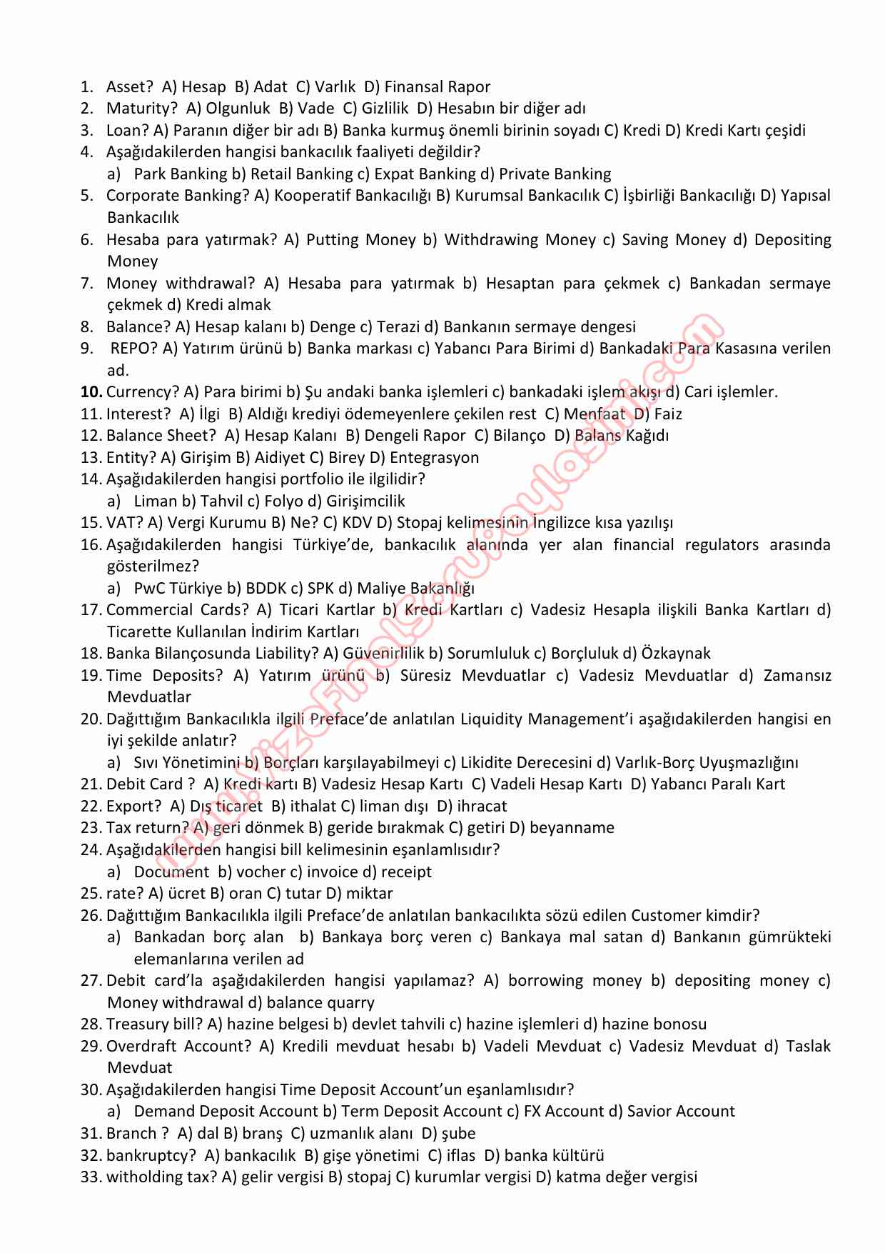 ingilizce Final Sınavı Çalışma Soruları (52 Soru Test) 8-01-2015, 12:54