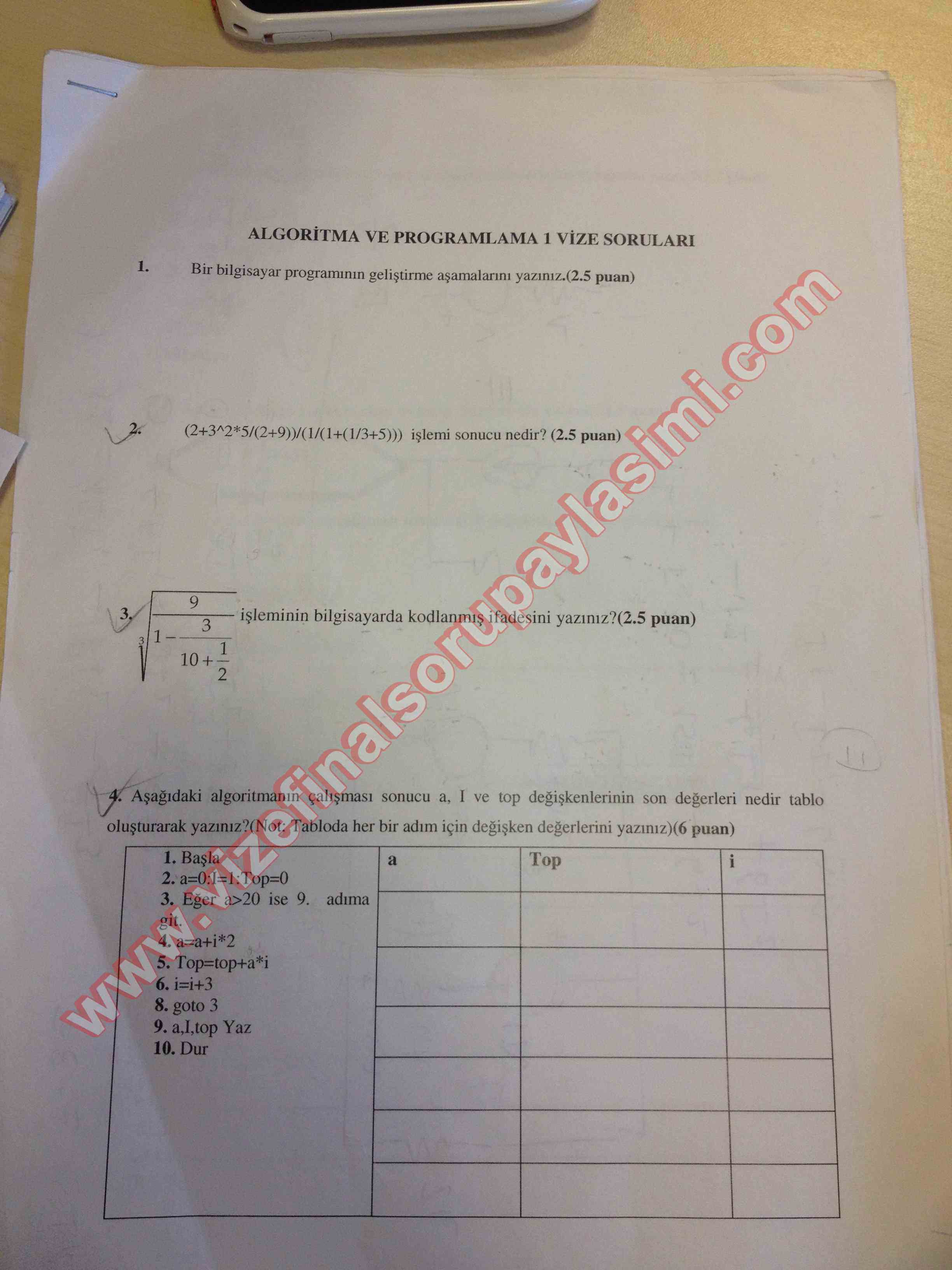 Algoritma ve Programlama-1 Vize Soruları 24-11-2014, 22:08