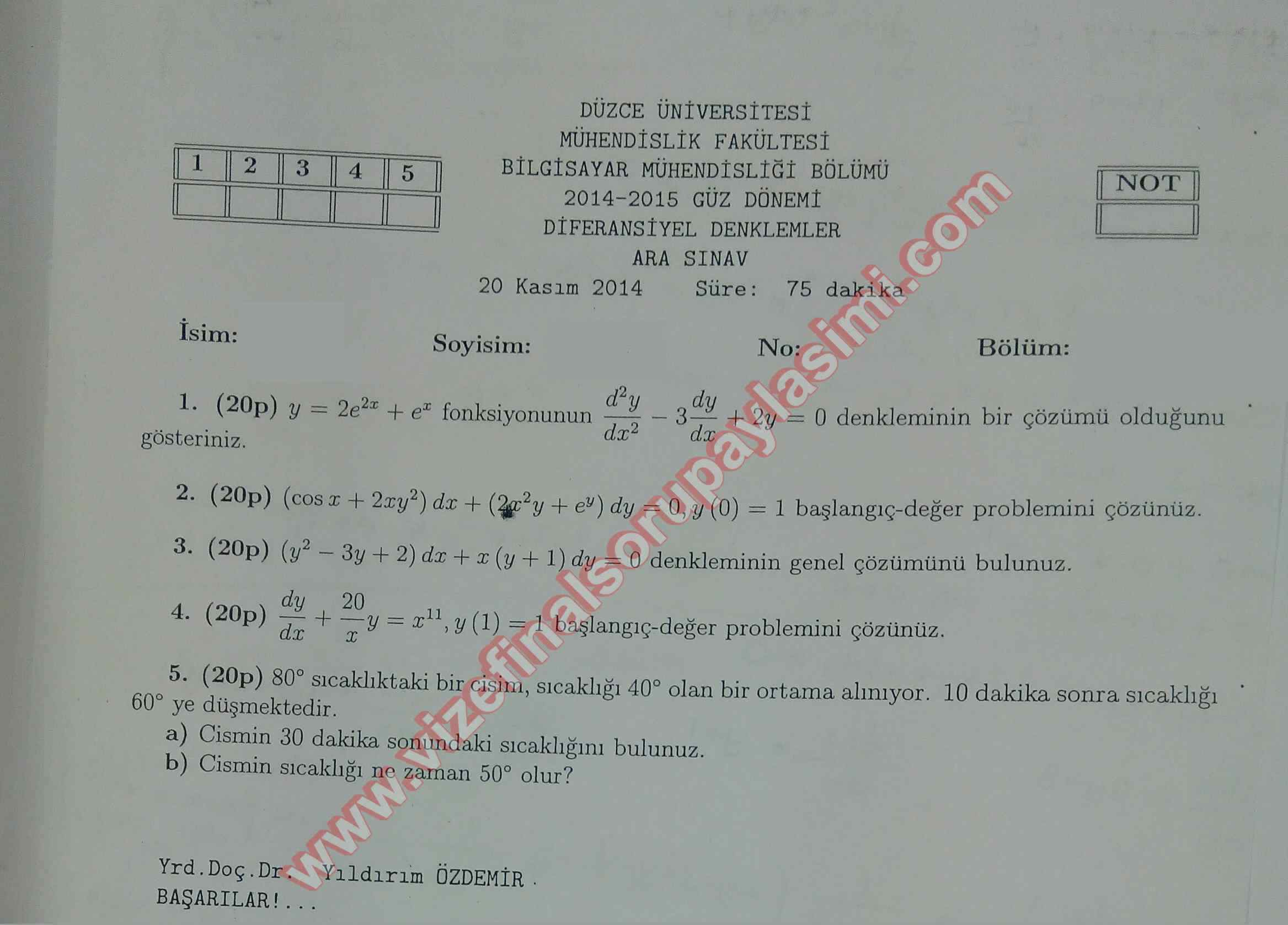 Diferansiyel Denklemler Vize Soruları - 2014 3-01-2015, 22:39
