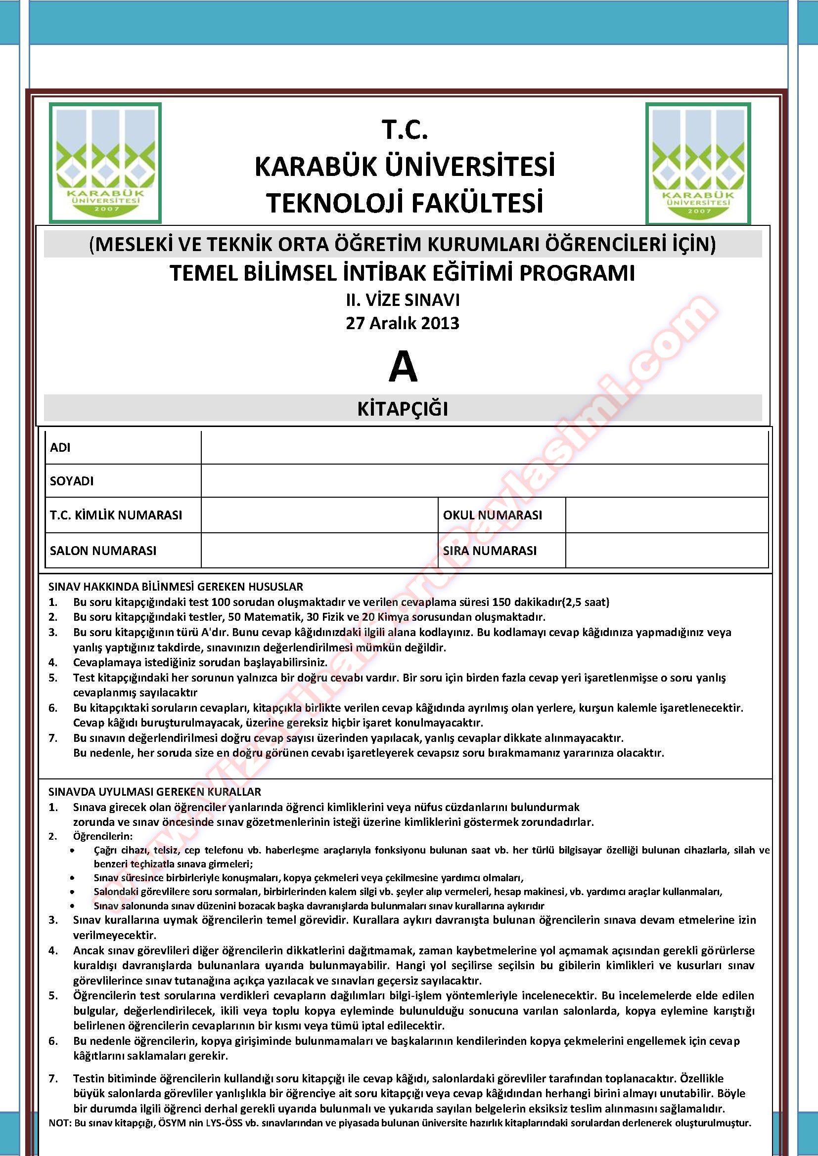Vize ve Final Soruları / Karabük Üniversitesi / Temel Bilimsel İntibak Eğitimi