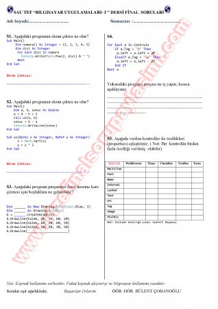 Vize ve Final Soruları / Sakarya Üniversitesi / Bilgisayar Uygulamaları Dersi