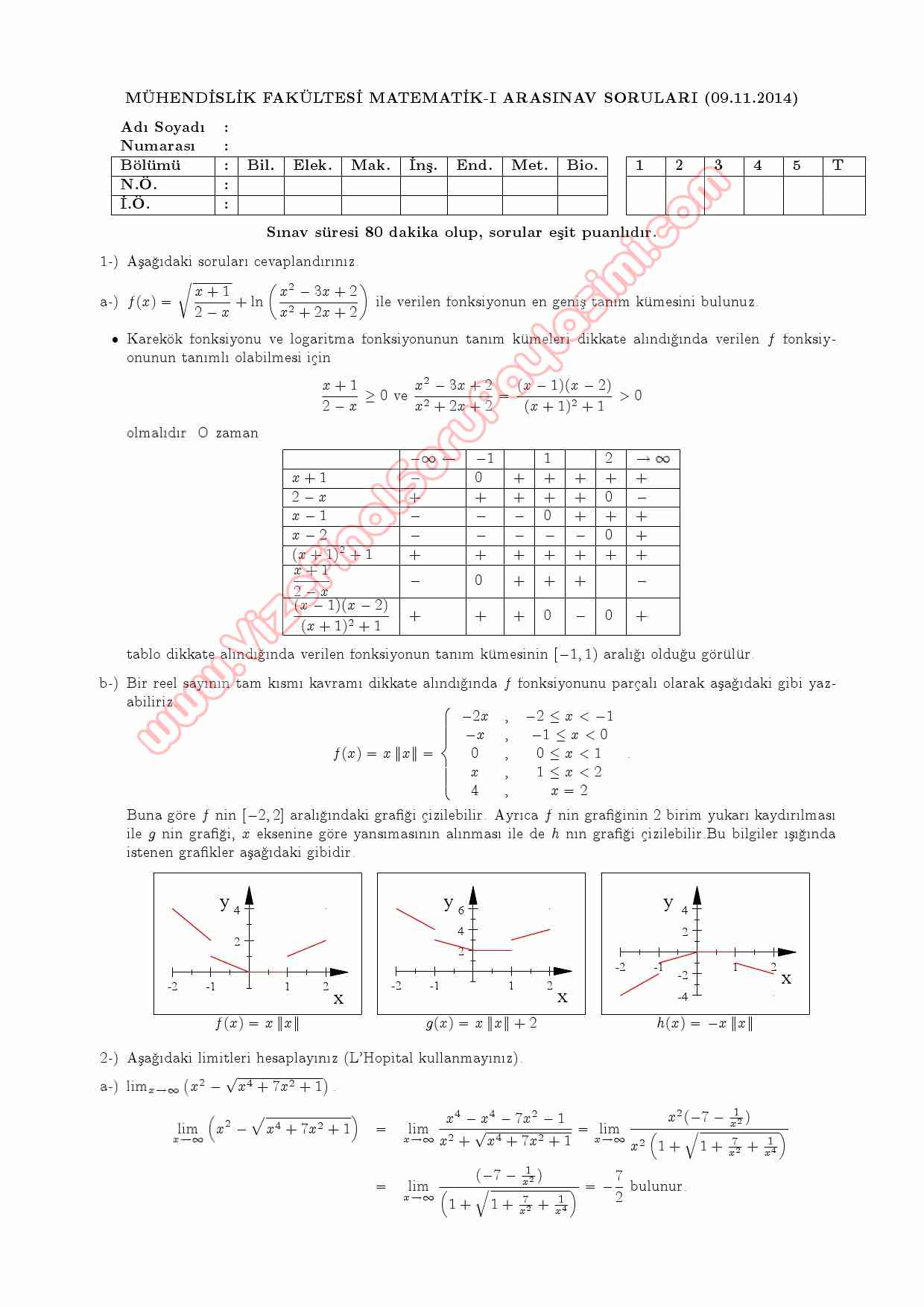 kirikkale kku matematik-1 matematik1 vize sorulari cevaplari cozumleri muhendislik GERİ DÖN-