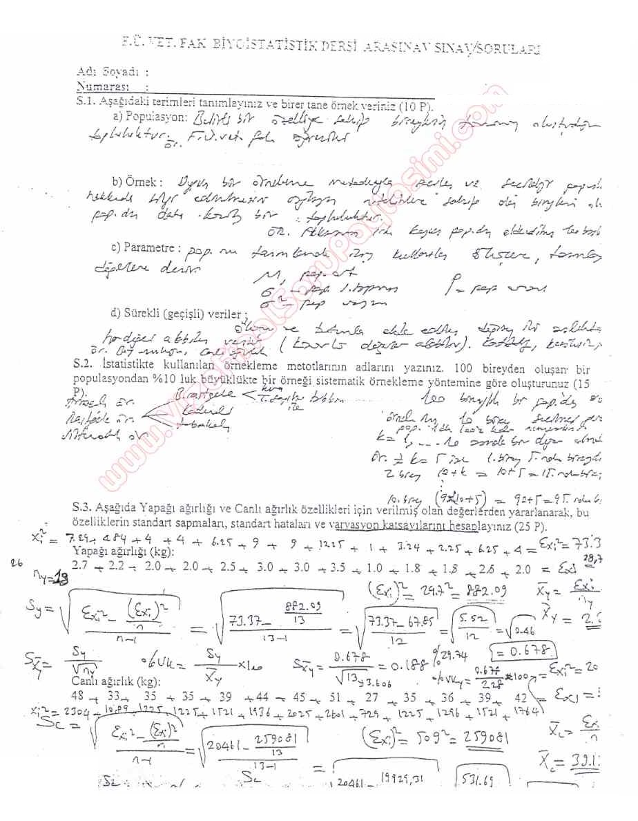 biyoistatistik dersi vize sorulari cevaplari firat uni veterinerlik fakultesi GERİ DÖN-