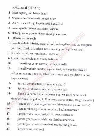 Anatomi Dersi Final Soruları 23-10-2015, 22:37