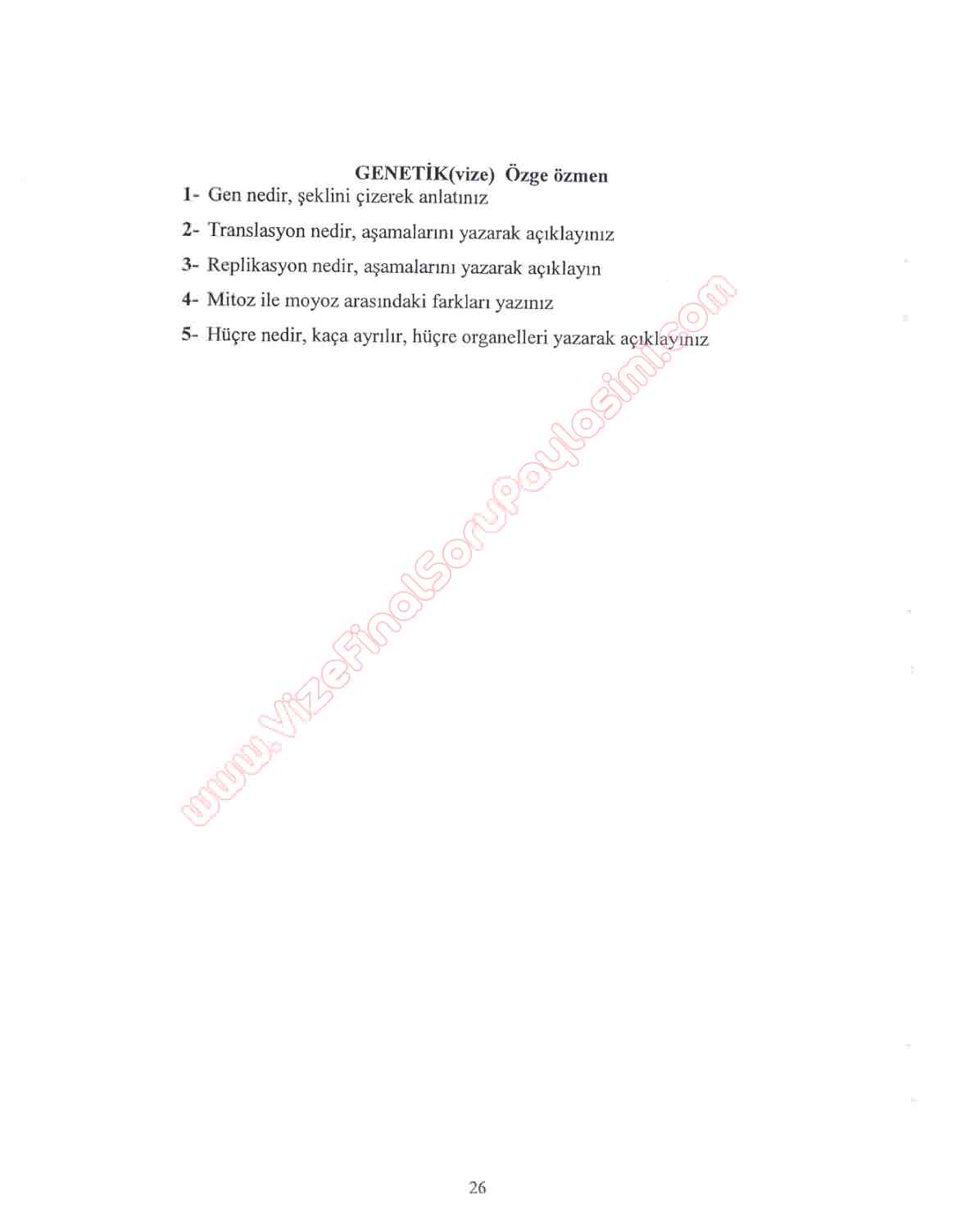 genetik dersi vize sorulari ozge ozmen fu firat uni