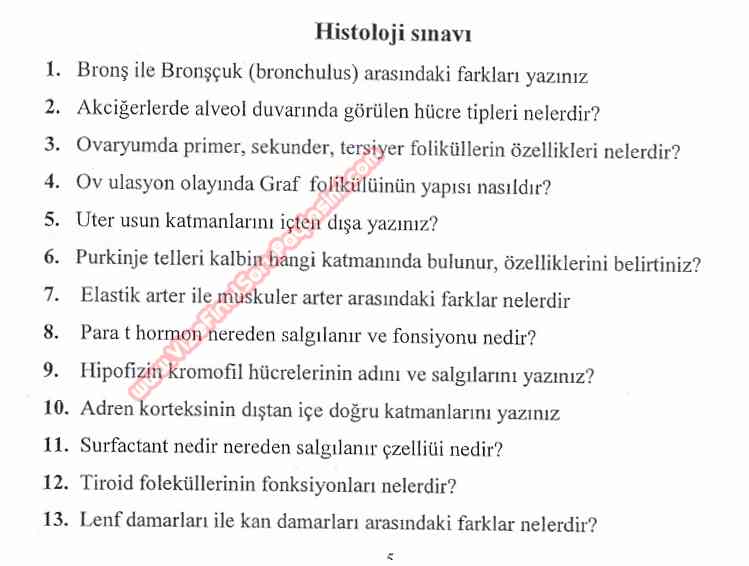 Histoloji Dersi Sınav Soruları 25-10-2015, 09:53