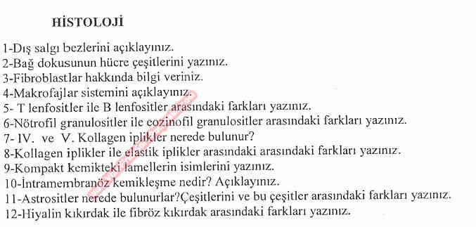 Histoloji Dersi Sınav Soruları 25-10-2015, 09:53