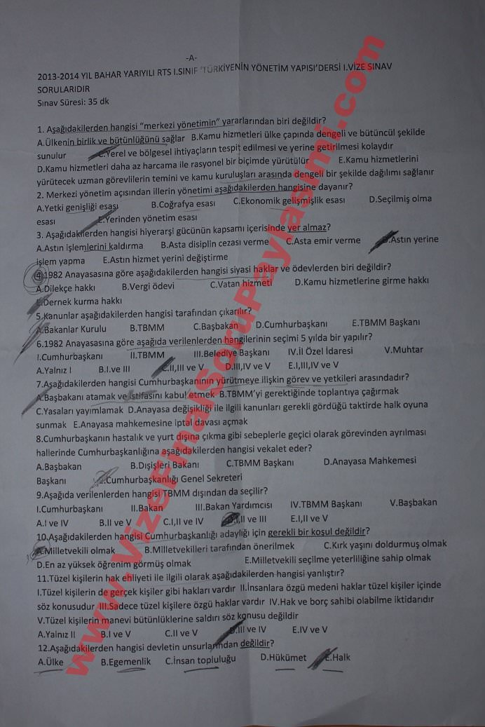 Türkiyenin Yönetim Yapısı Vize Soruları