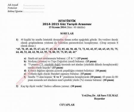 İstatistik Dersi Vize Soruları 29-08-2015, 20:53