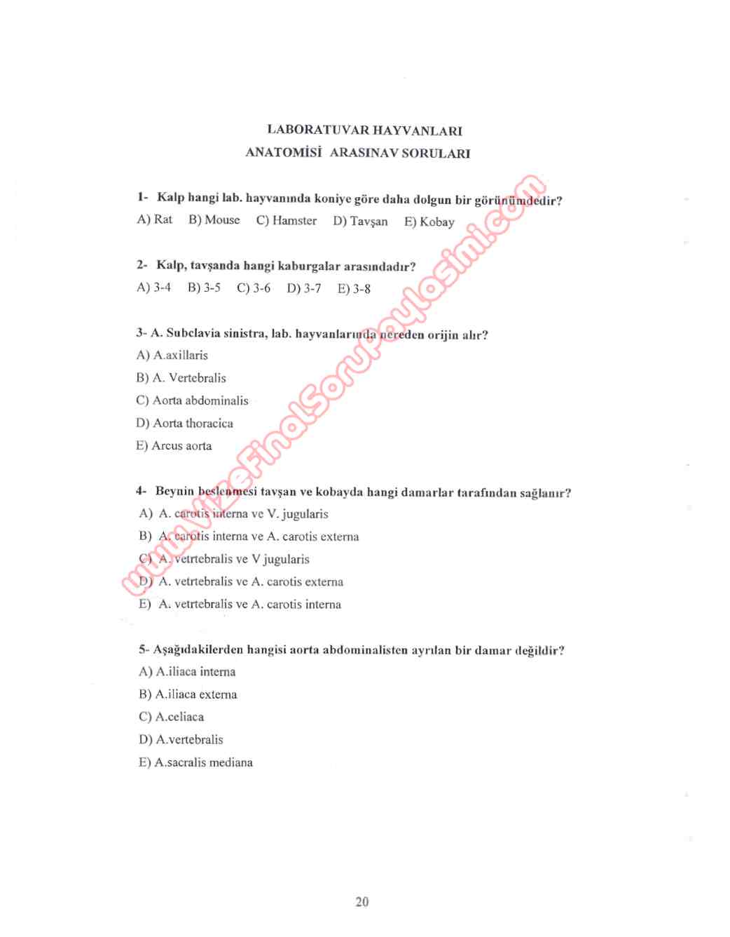 Laboratuvar Hayvanları Anatomisi Vize Soruları 25-10-2015, 22:12