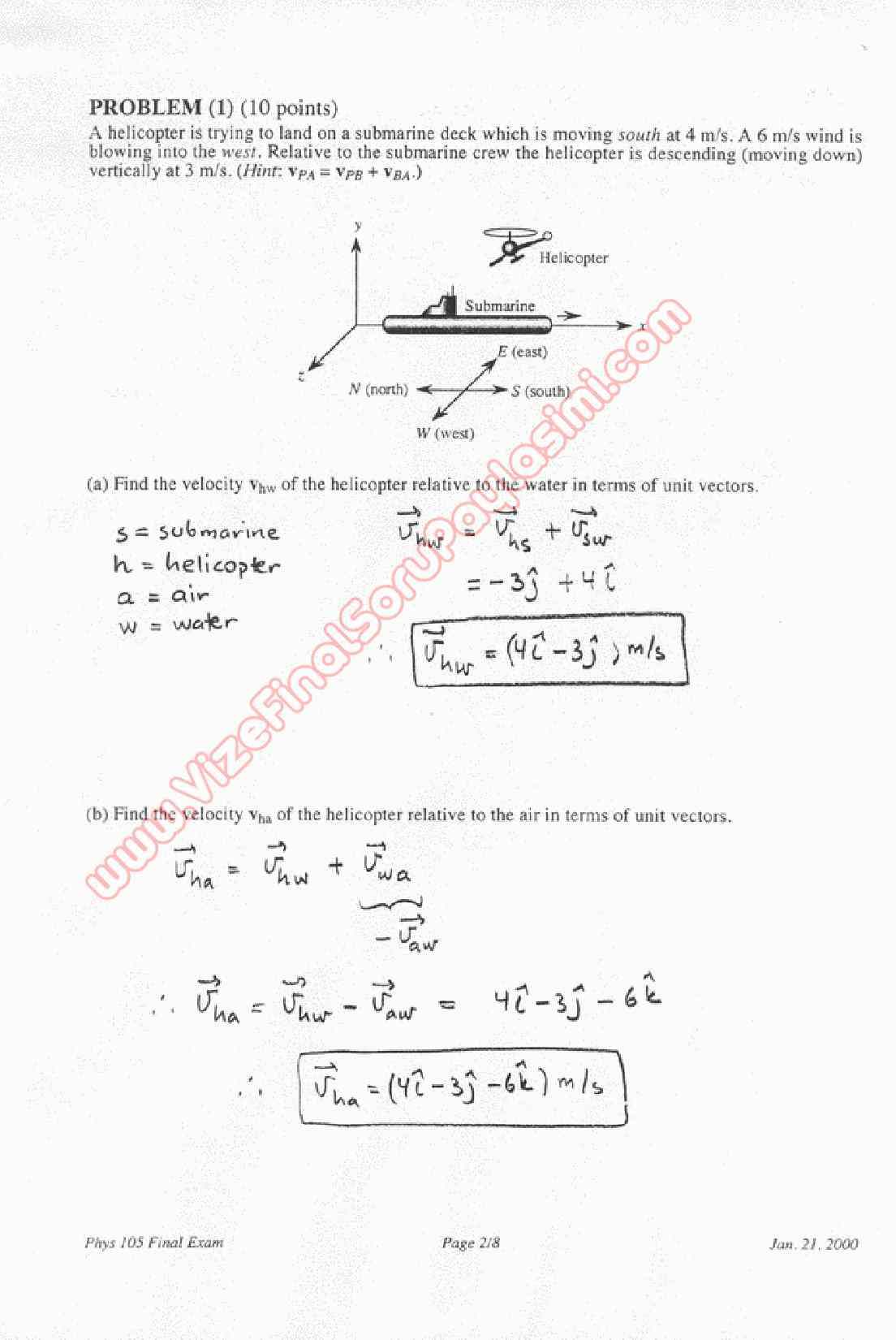 Physics-1 First Midterm Questions and Solutions Year 2000 Spring 29-10-2015, 03:15