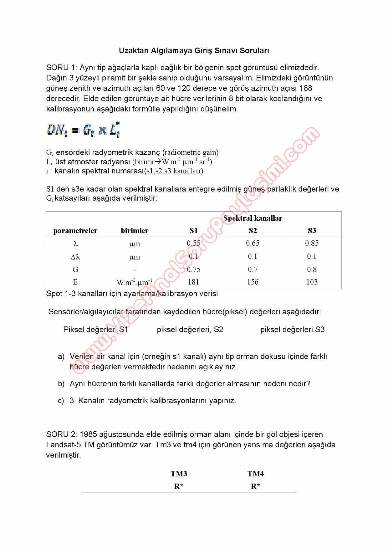 Uzaktan Algılamaya Giris Sınav Soruları