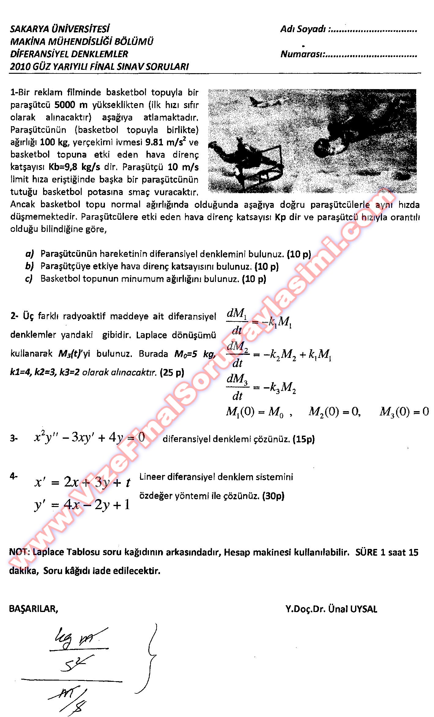 Diferansiyel Denklemler Final Soruları-2012 5-11-2014, 23:29
