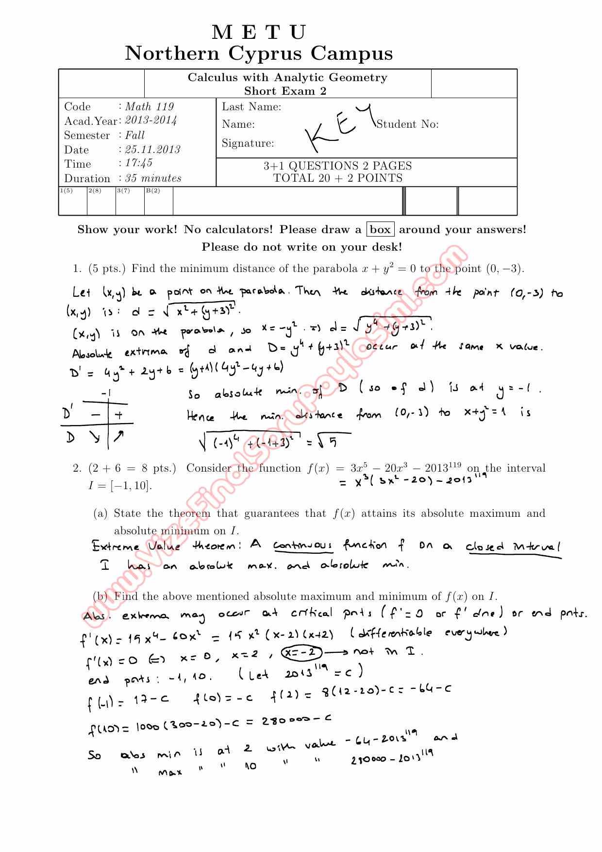 Calculus With Analytic Geometry Short Exam Questions and Solutions Fall 2014 29-10-2015, 04:55