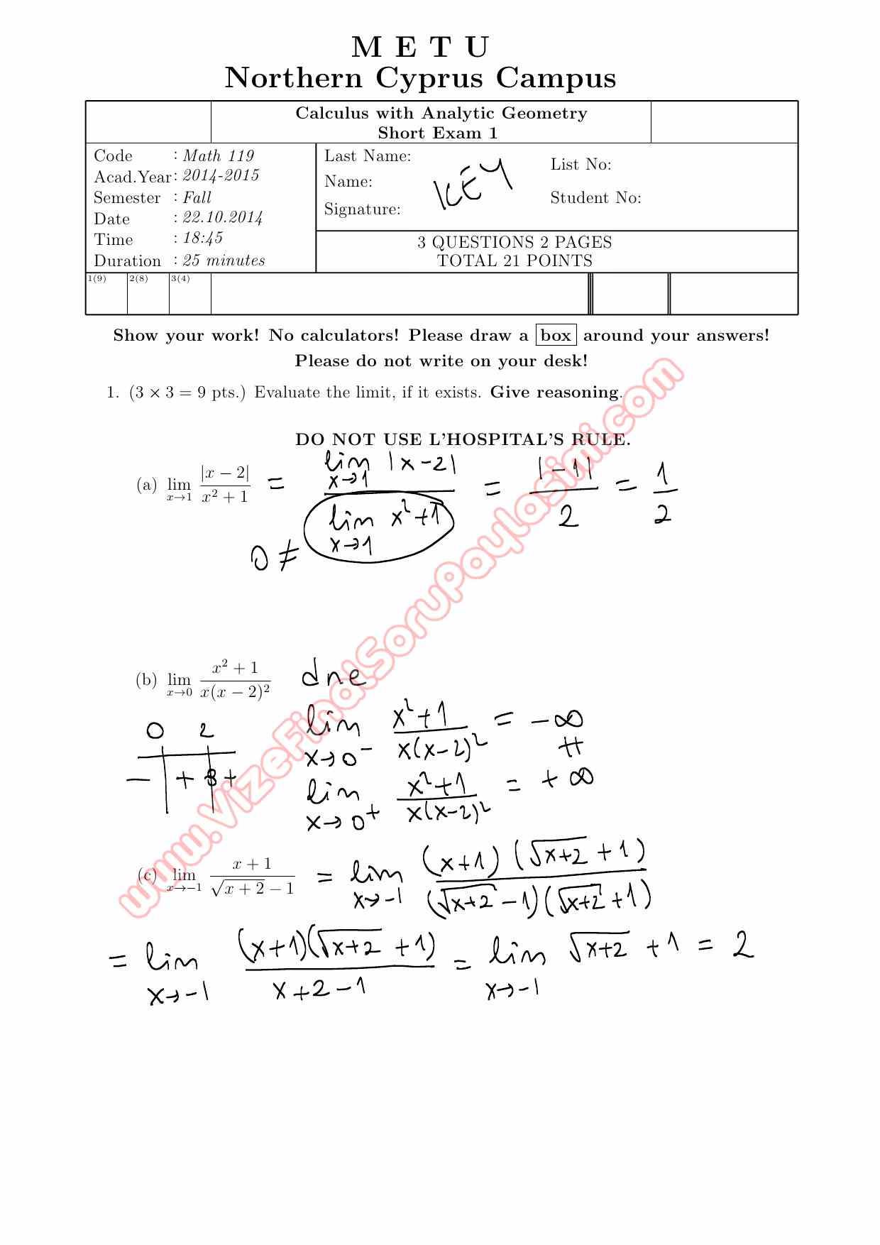 calculus-with-analytic-geometry odtü fall-2014 short-exam GERİ DÖN-