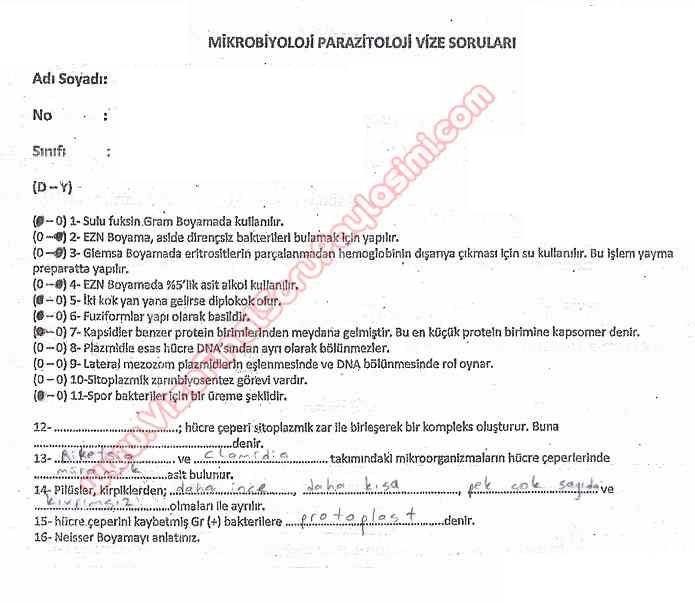 Mikrobiyoloji Dersi Vize Soruları ve Cevapları 2-01-2015, 22:37