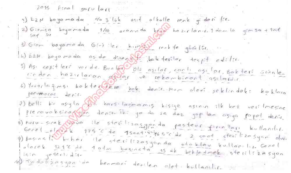 Mikrobiyoloji Dersi Vize Soruları ve Cevapları 2-01-2015, 22:37
