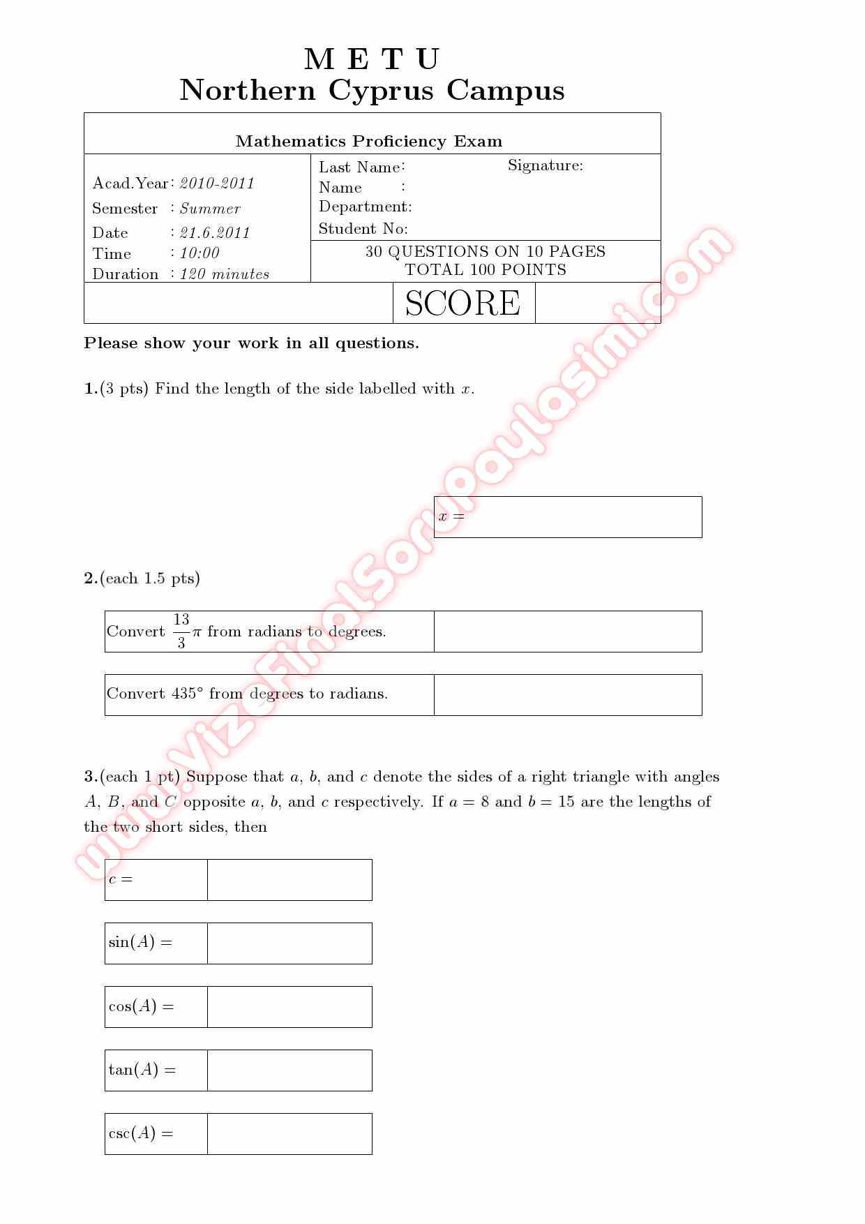 Precalculus Mathematics Proficiency Exam GERİ DÖN-