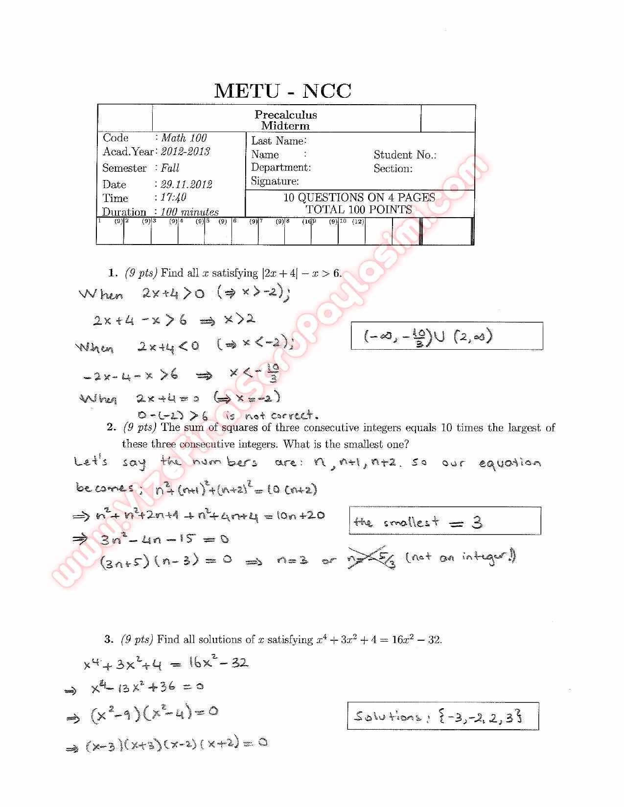 Precalculus Midterm Exam Questions Solutions 2013-Fall GERİ DÖN-