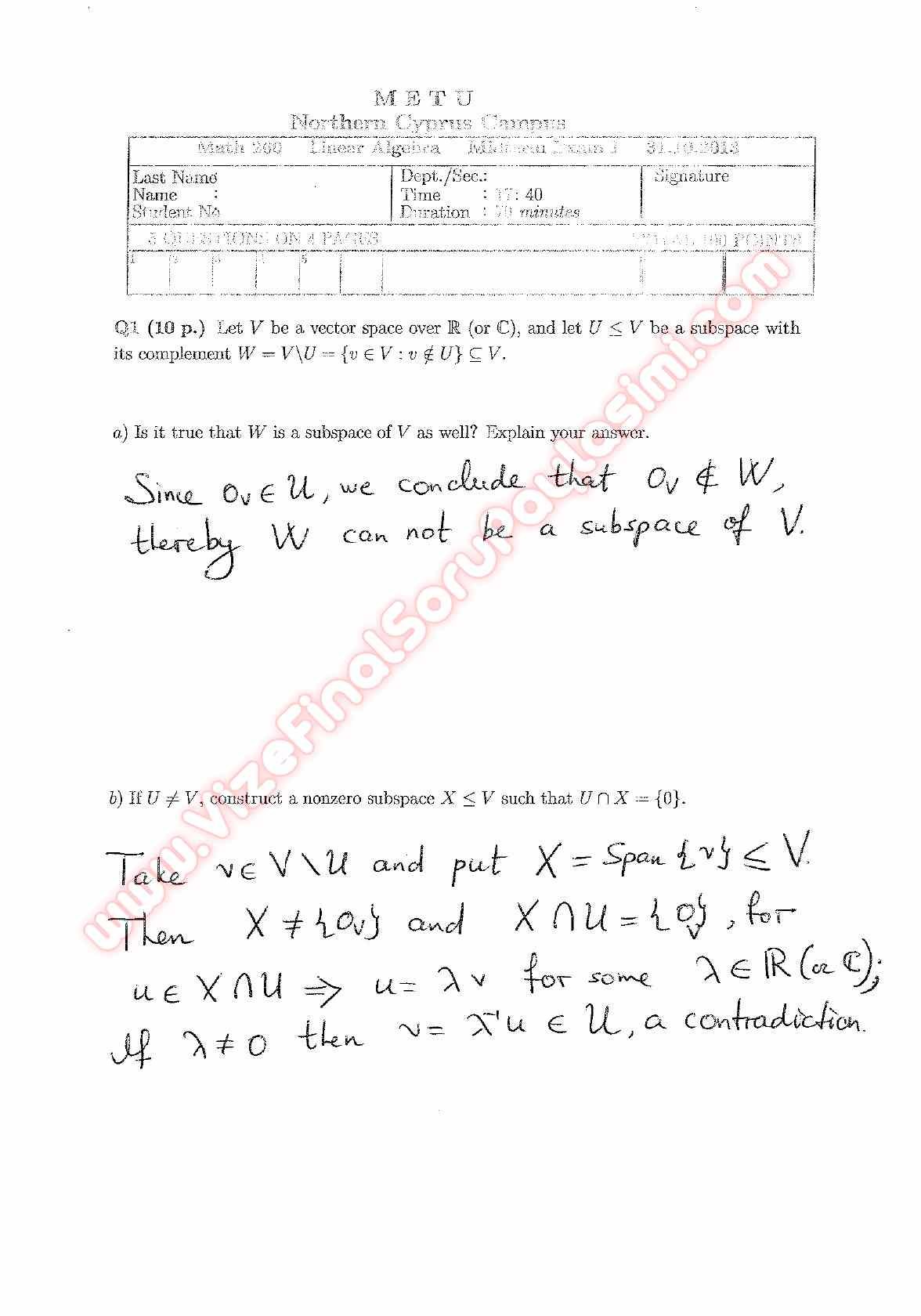 Linear Algebra Midterm Question Solution GERİ DÖN-