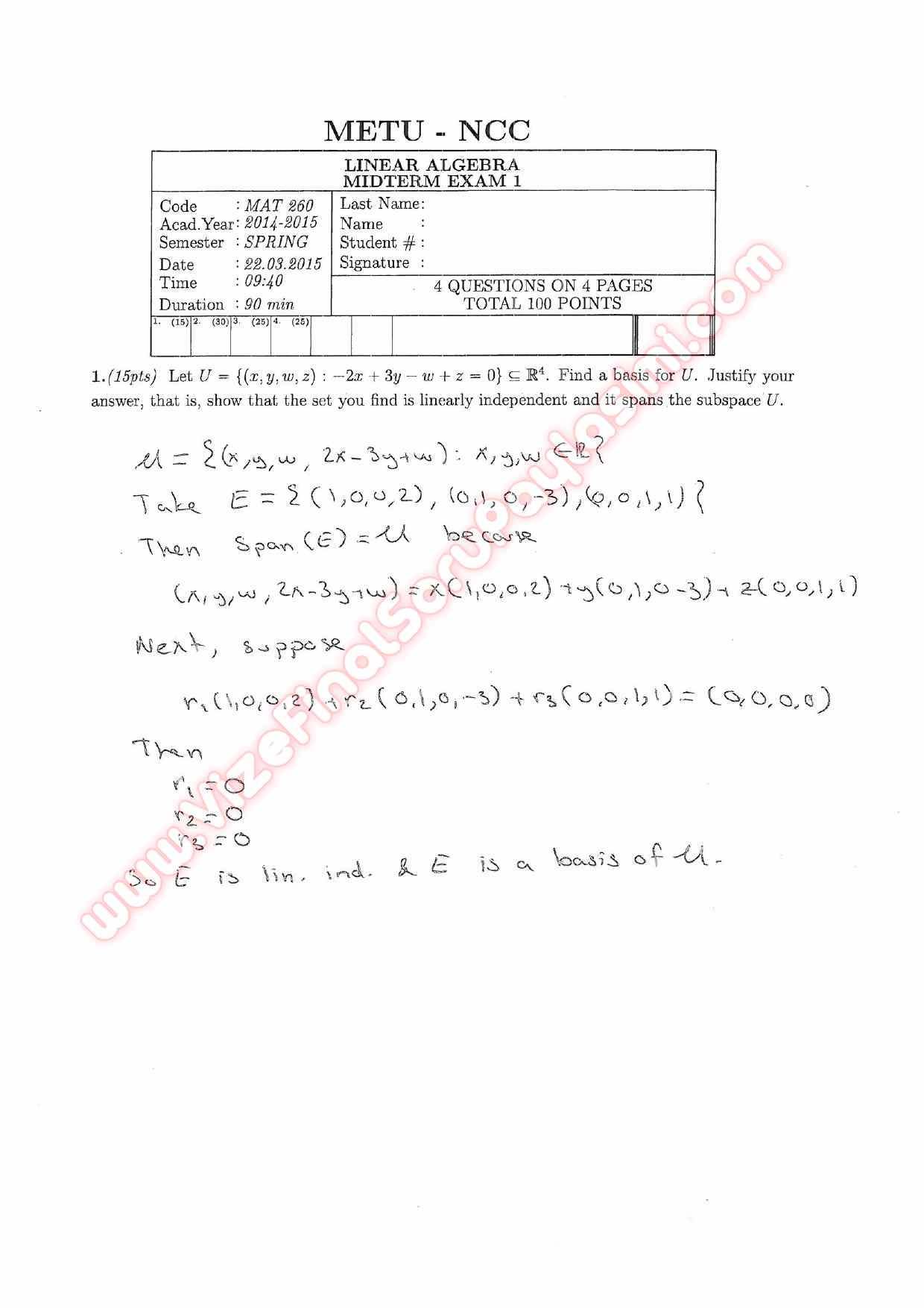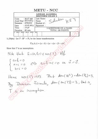 Linear Algebra Midterm Question Solution GERİ DÖN-
