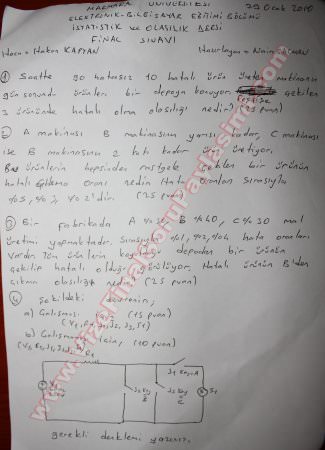 İstatistik ve Olasılık Sınav Soruları 23-11-2014, 11:23