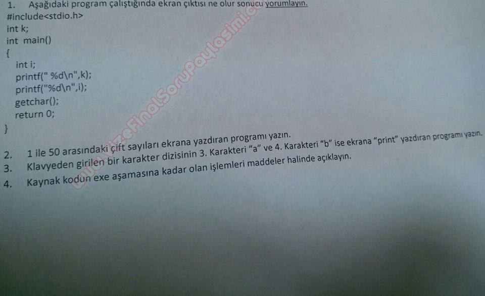 Bilgisayar Programlama Vize sorulari 9-07-2015, 00:35