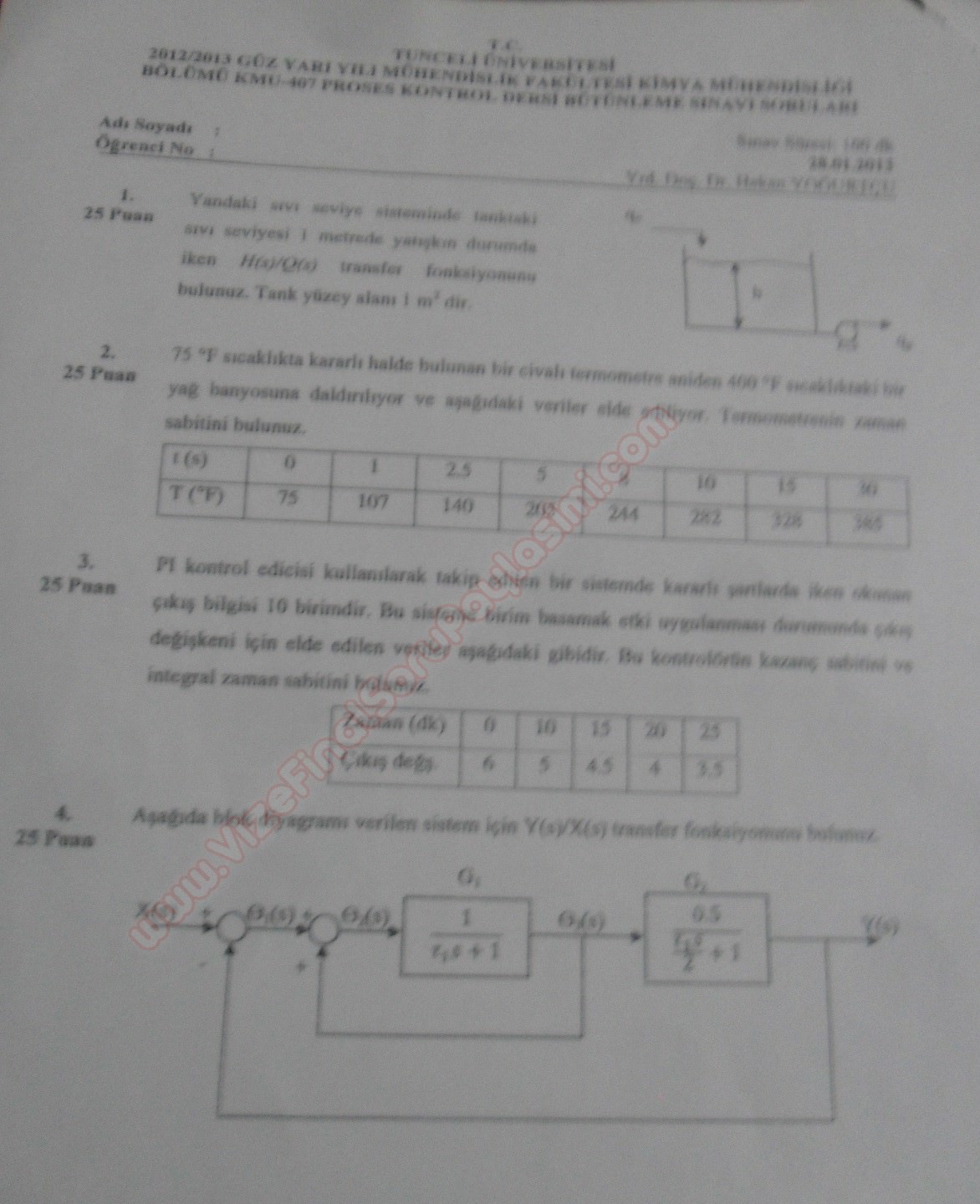 proses kontrol dersi butunleme sorulari tunceli uni universitesi