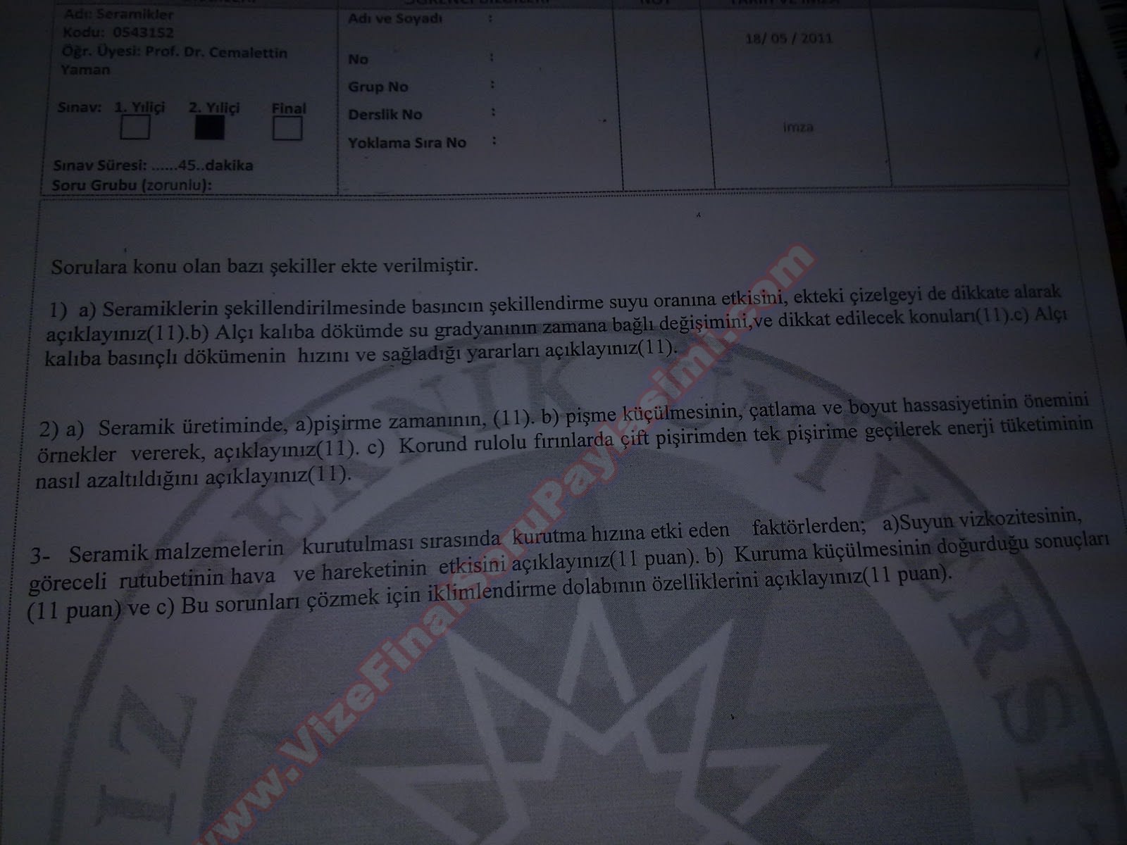 Seramik Malzemeler Dersi Sınav Soruları 15-10-2014, 23:27
