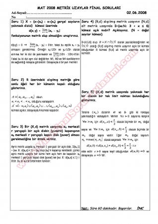 Metrik Uzaylar Final Soruları - 2008 16-10-2014, 23:25