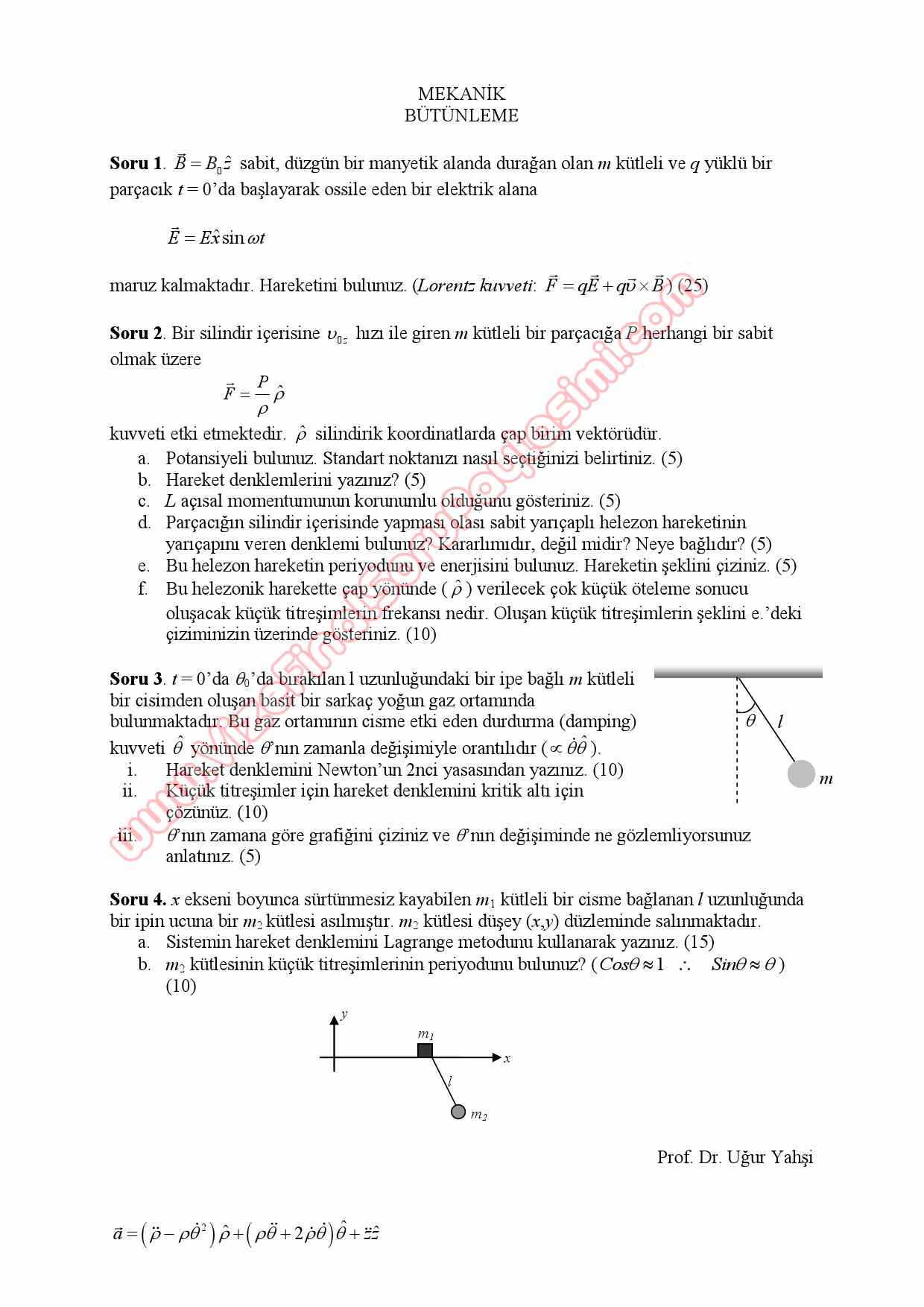 Mekanik Dersi Final Soruları ve Cevapları 4-12-2015, 21:06