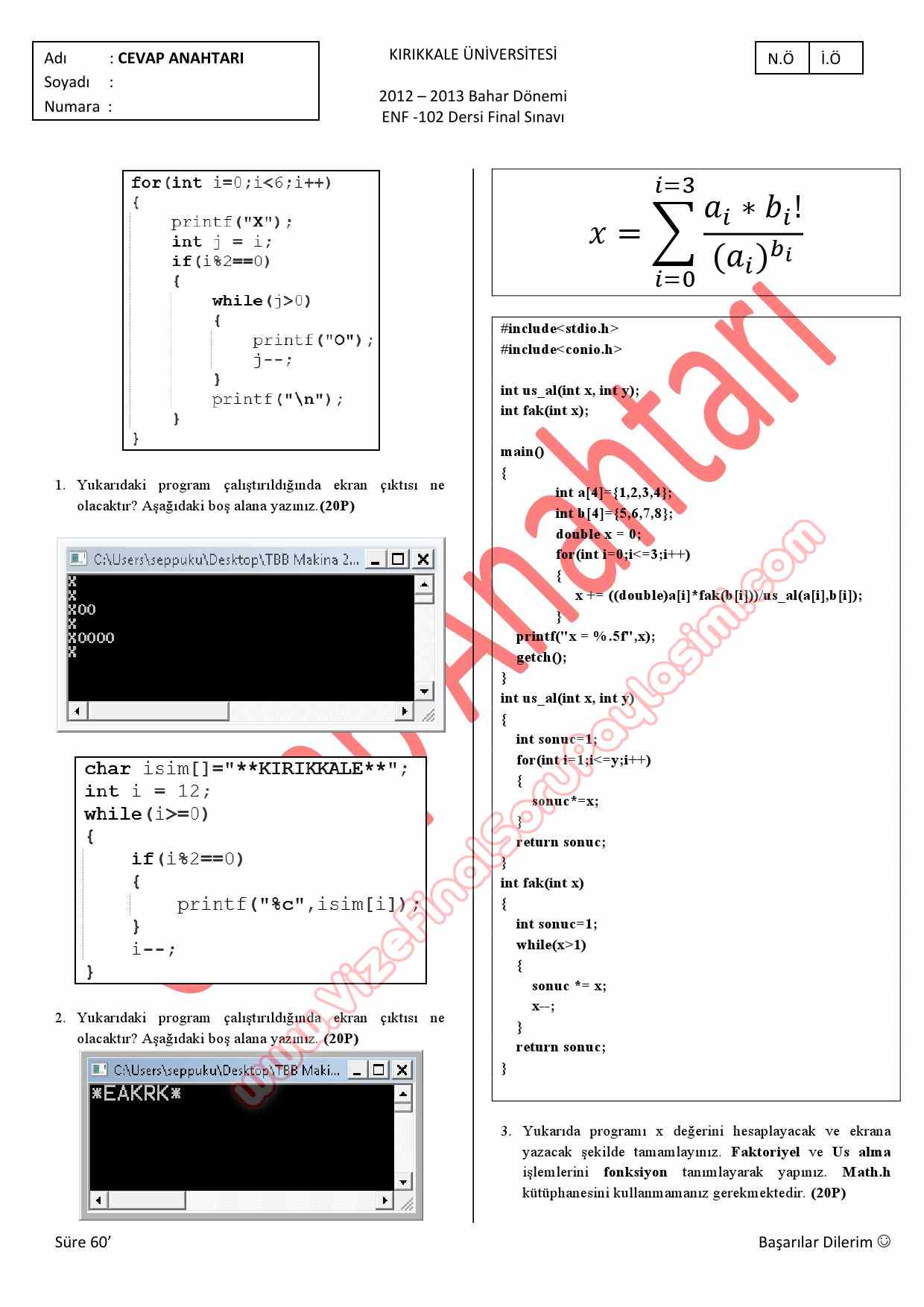 Vize ve Final Soruları / Kırıkkale Üniversitesi / Temel Bilgisayar Bilimleri Dersi