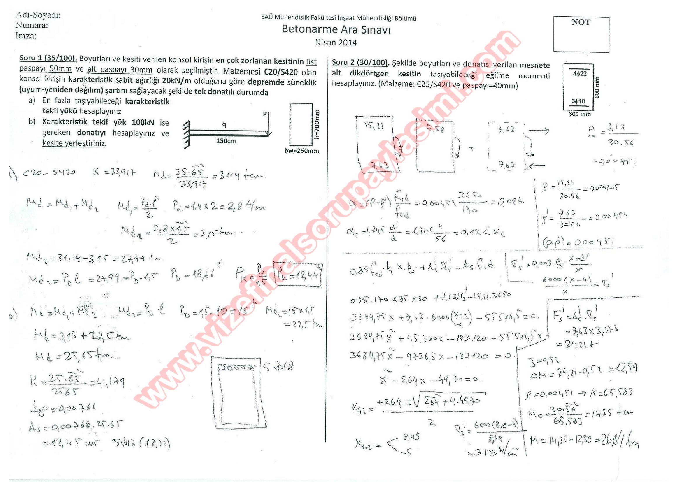 Betonarme-1 Vize Soruları Ve Cevapları - 2014