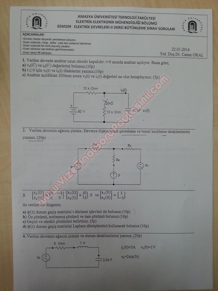 Vize ve Final Soruları / Amasya Üniversitesi / Elektrik Devreleri -2