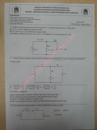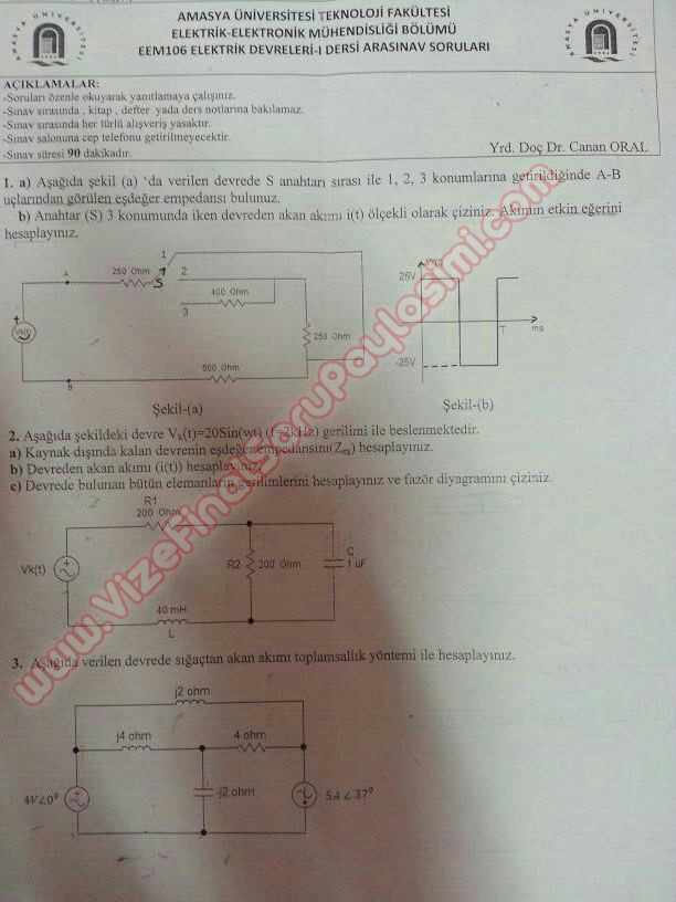 Vize ve Final Soruları / Amasya Üniversitesi / Elektrik Devreleri -1