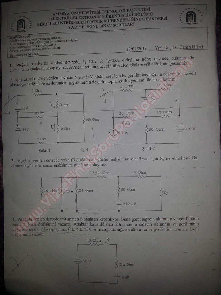 Vize ve Final Soruları / Amasya Üniversitesi / Elektrik Elektronik Mühendisliğine Giriş
