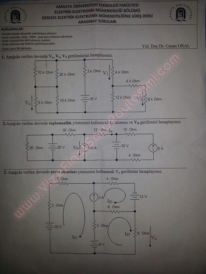 Elektrik Elektronik Müh Giriş Vize Soruları Amasya Üniversitesi