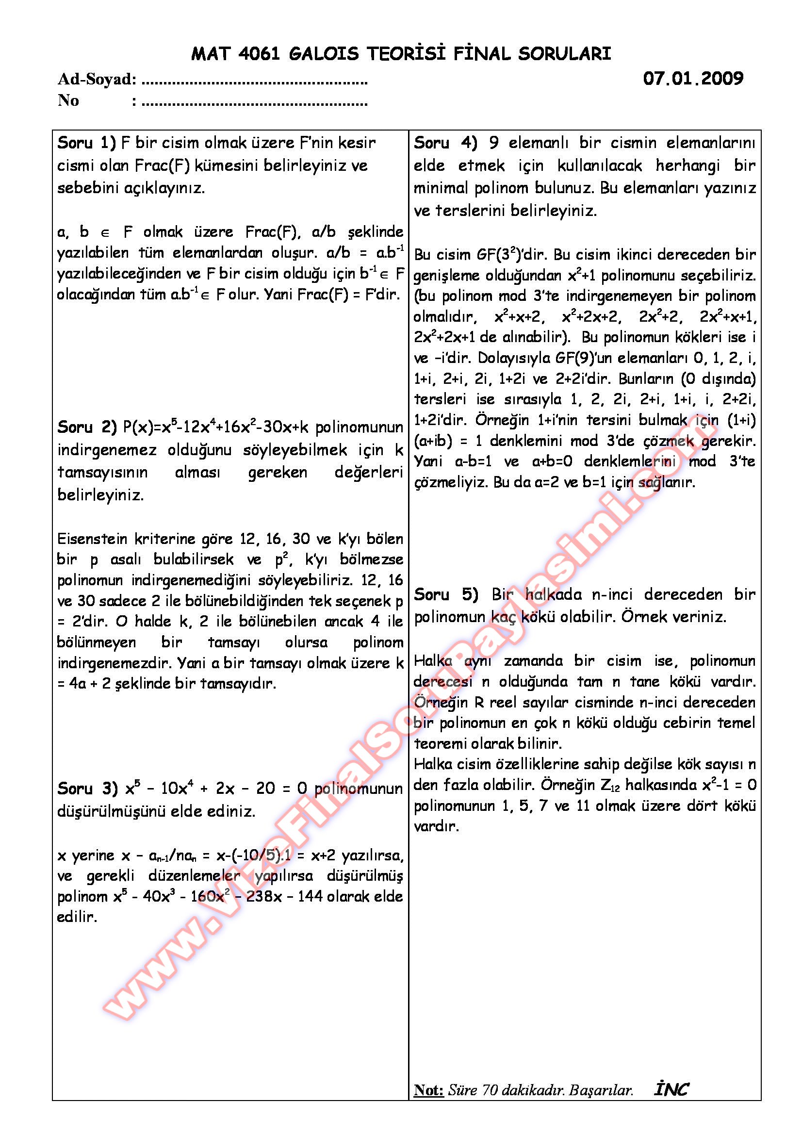 Galois Teorisi Final Soruları - 2008 16-10-2014, 20:43