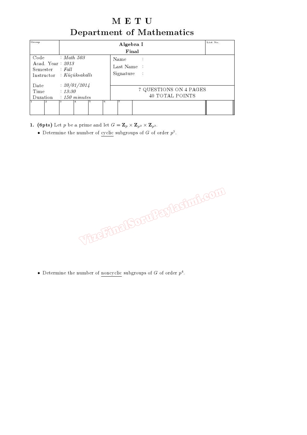 Algebra 1 Final Questions ODTU GERİ DÖN-
