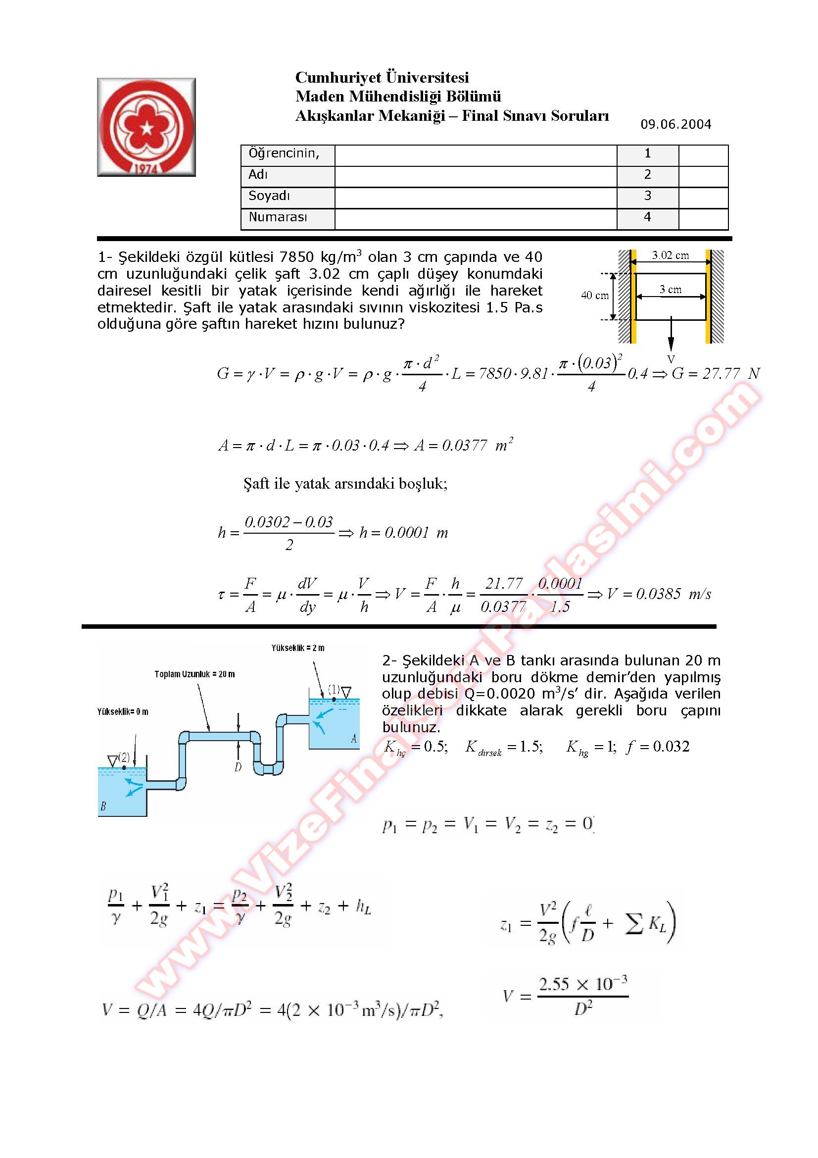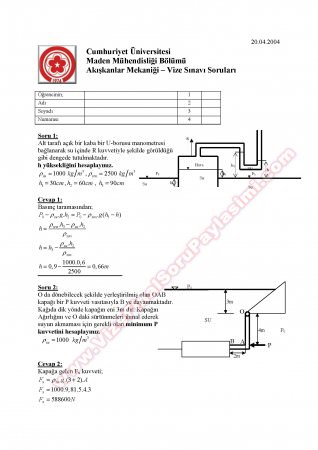 Vize ve Final Soruları / Cumhuriyet Üniversitesi / Akışkanlar Mekaniği