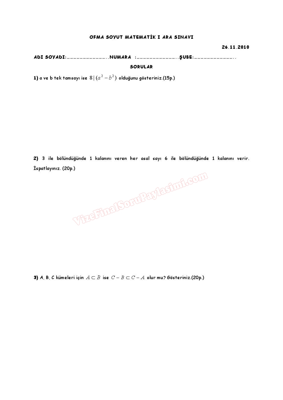 Soyut Matematik Vize Soruları 2010 22-12-2015, 14:53