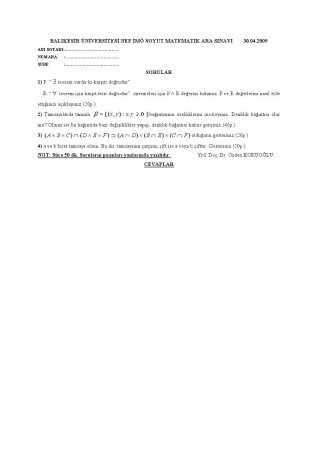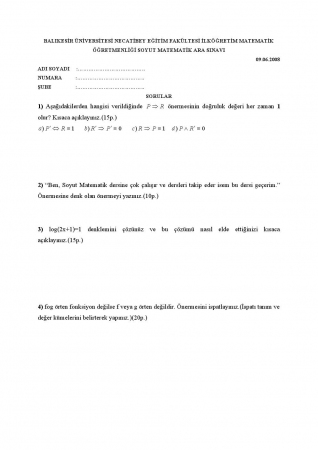 Vize ve Final Soruları / Balıkesir Üniversitesi / Soyut Matematik -1