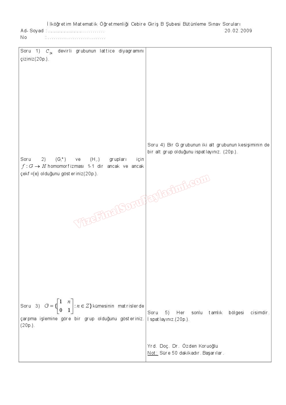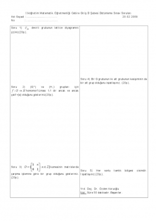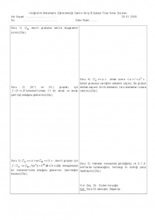 Cebire Giriş Dersi Final Soruları 2009 23-12-2015, 16:07