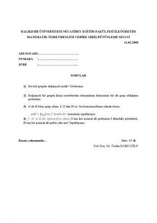Cebire Giriş Bütünleme Soruları Balıkesir Üniversitesi