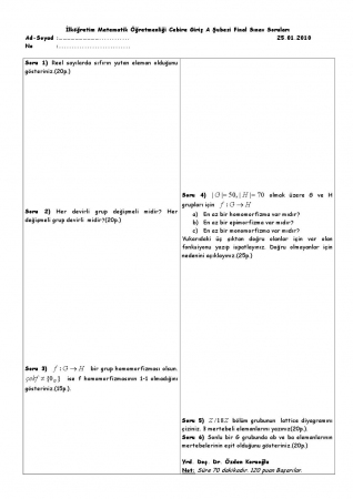 Cebire Giriş Dersi Final Soruları 2010 23-12-2015, 16:11
