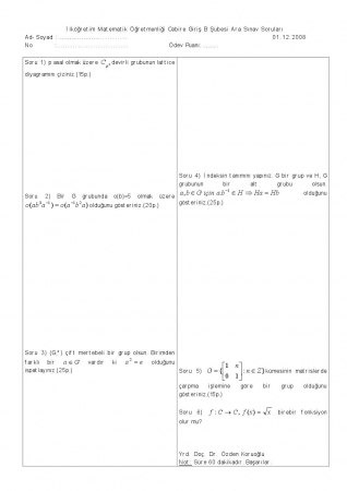 Cebire Giriş Dersi Vize Soruları 2008 23-12-2015, 16:34