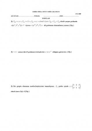 Cebire Giriş Dersi Vize Soruları 2009 23-12-2015, 16:38