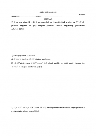 Cebire Giriş Dersi Vize Soruları 2010 23-12-2015, 16:43