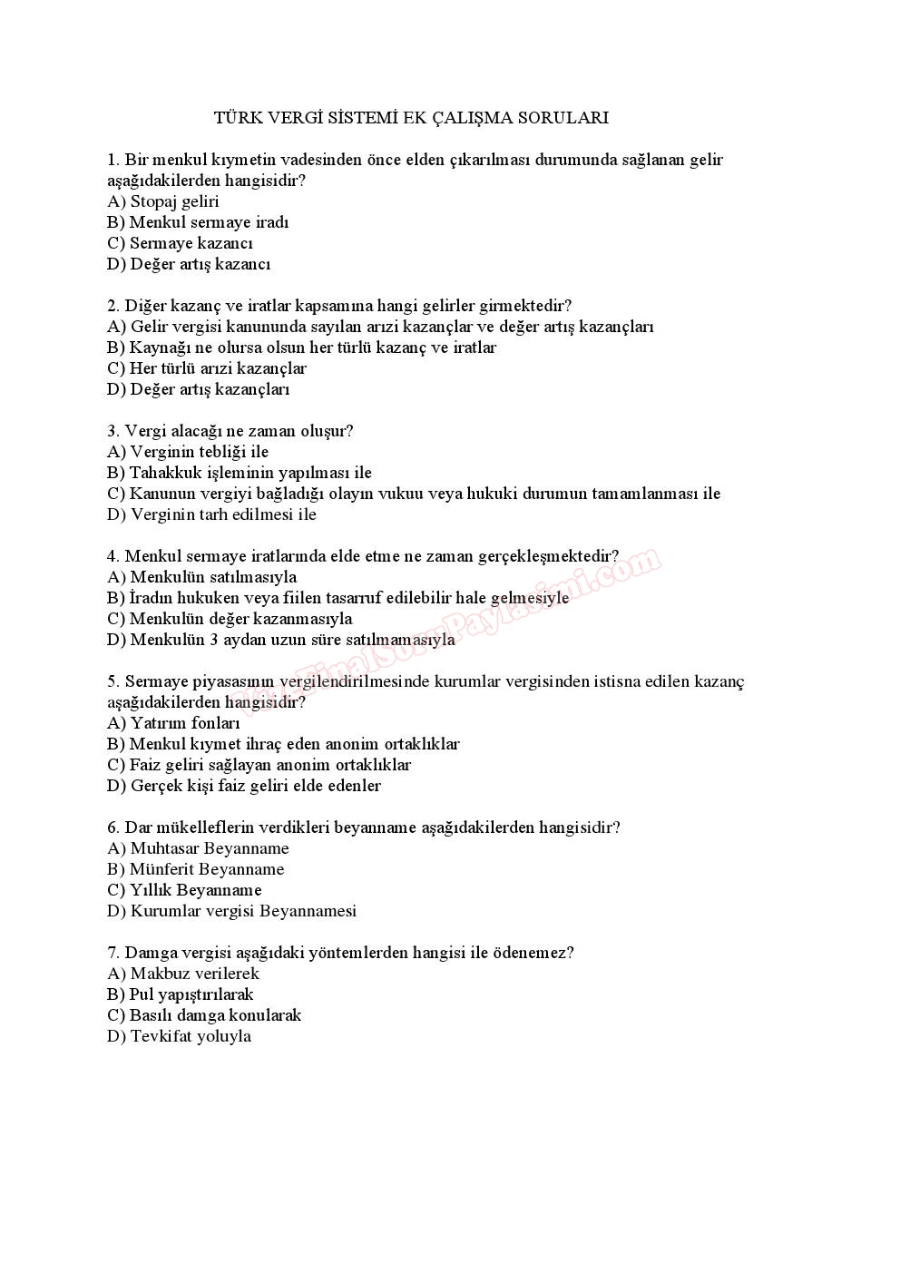 Türk Vergi Sistemi Dersi Vize Çalışma Soruları 25-12-2015, 13:44