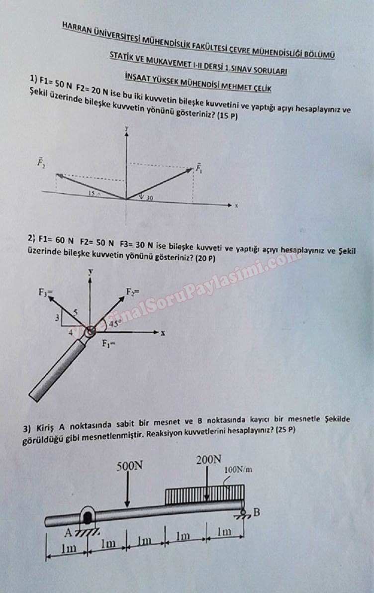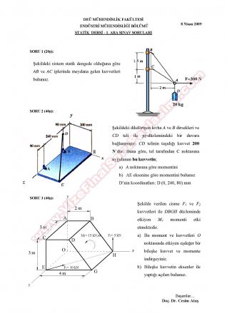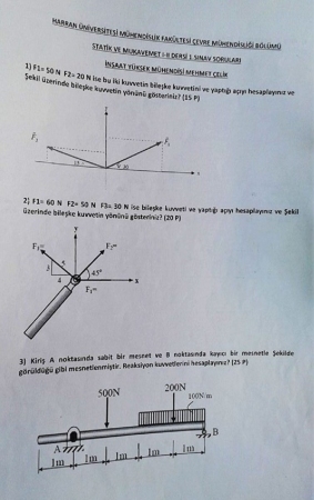 Statik Dersi Vize Soruları - Tekstil Mühendisliği 27-08-2015, 12:48